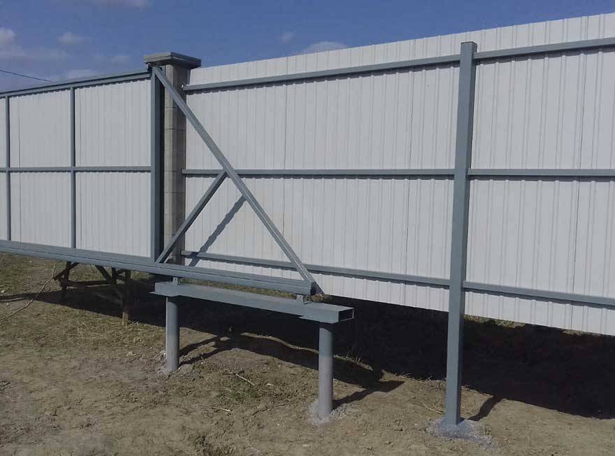 Существуют разные варианты оснований, которые подходят для строительства и установки откатных ворот. Все они отличаются конструкцией, но имеют нечто общее: чтобы выполнить монтаж подвижной створки, создается надежная опора, представляющая собой П- или Ш-образную конструкцию из бетона и металла. По краям проема ворот должны быть установлены столбы, поэтому их также учитывают, когда составляется проект.