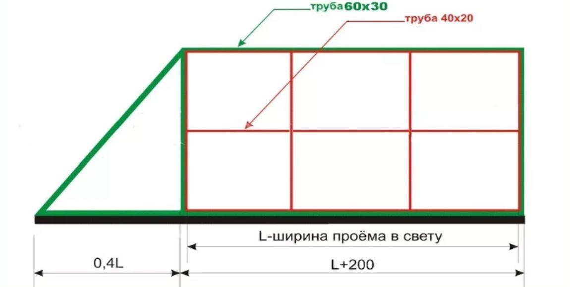 - профильные трубы прямоугольного или квадратного сечения – первые из видов используются при проектировании каркаса полотна, рекомендованный размер – 60х30 мм, 60х40 мм, для укрепления применяют небольшие трубы – 40х20 мм, 40х25 мм или 20х20 мм, зависит от цели, назначения;