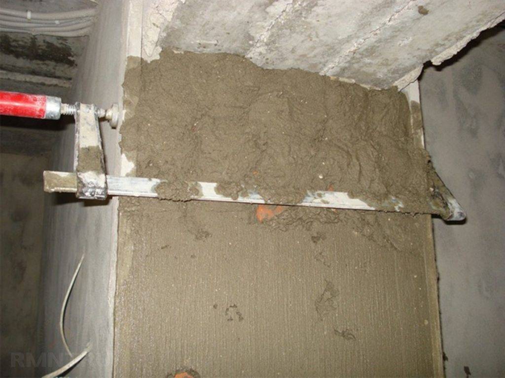 - Когда все элементы конструкции двери удалены, проём зачищается и, при необходимости, дорабатывается с помощью штукатурки до достижения ровной поверхности его торцевой части.