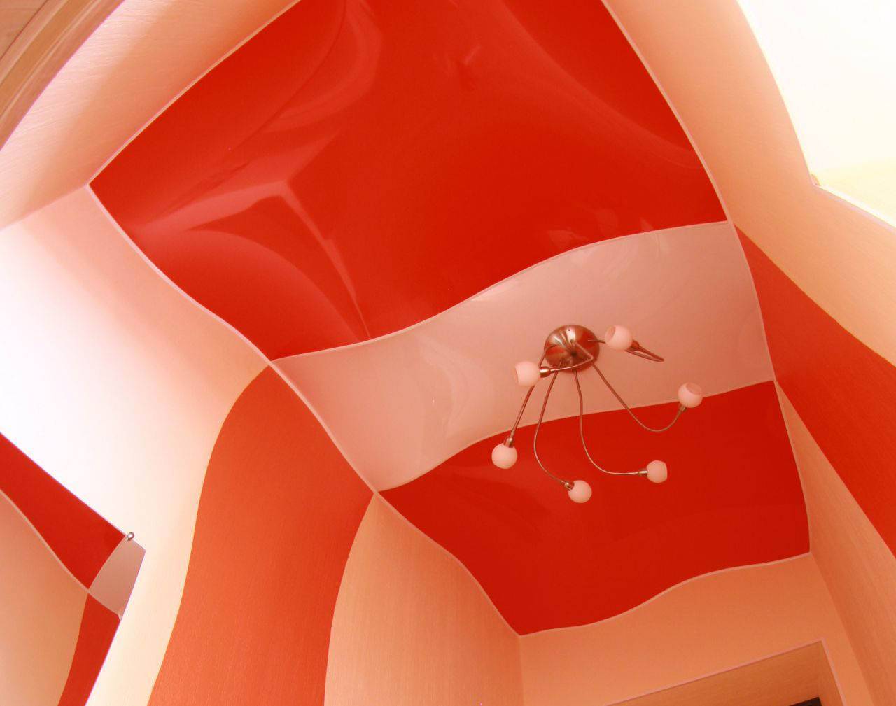 Как вы могли убедиться по фото, двухцветные натяжные потолки — один из мощнейших инструментов достижения оригинальности интерьера, позволяющий перенести в реальность любые ваши художественные фантазии. Относительная простота монтажа, бесконечный выбор цветовых вариаций и широкие декоративные возможности нивелируют и без того едва заметные недостатки, позволяя использовать их как формате просторного пригородного коттеджа, так и обычной городской квартиры. Удачно или же нет? А вот это уже зависит от того, насколько внимательно вы читали наш материал и усвоили базовые принципы использования двухцветных натяжных потолков на практике. В рассмотренных в данной статье примерах используется сочетание монотонных цветов, что может показаться кому-либо достаточно скучным
