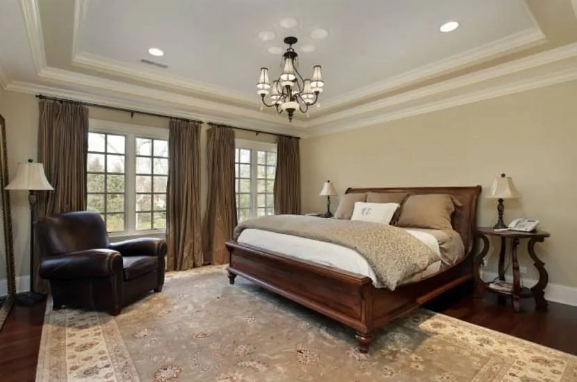Люстра. Классический осветительный элемент, который может располагаться в любом месте спальной. Может использоваться как в декоративных, так и в практических целях.