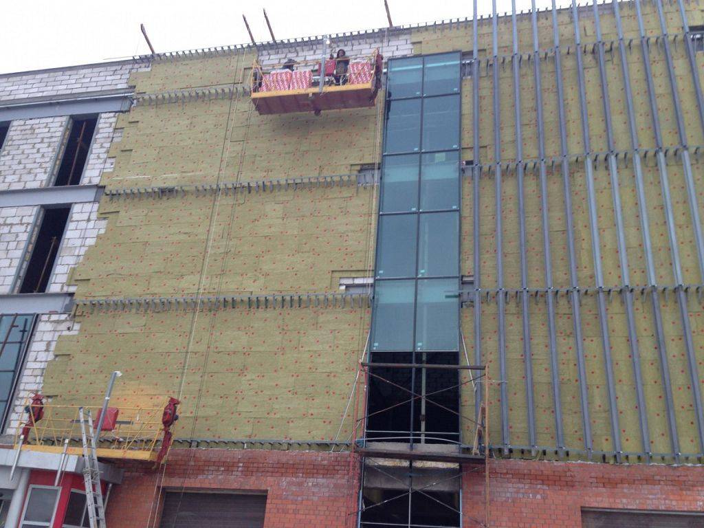 Используются вентилируемые фасады зданий для повышения теплосохраняющих качеств стен. В состав конструкции этого типа обычно входят такие материалы, как: