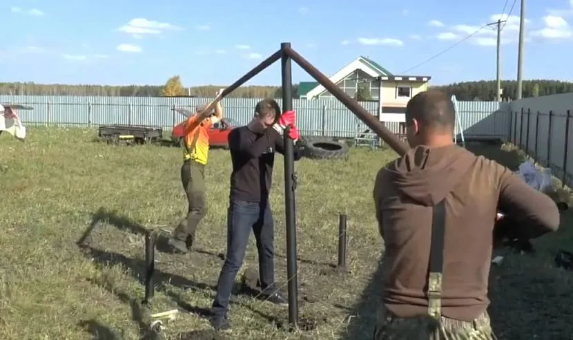 Вращение будет производиться путём воздействия на трубу, надетую на лом – она послужит рычагом, передающим стволу поворотное усилие. Чем больше рычаг, тем легче будет его крутить. Чтобы проще было вращать, трубы нужно постараться опустить вниз, для чего лом придётся немного согнуть.