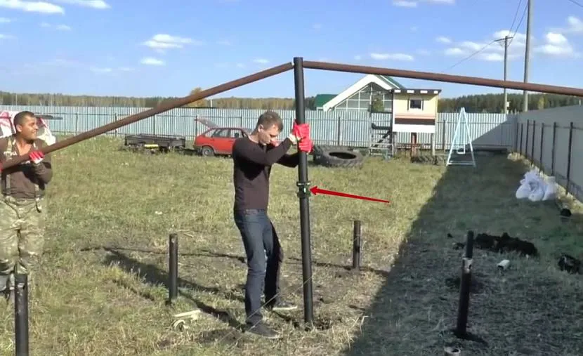 Работа велась стандартным способом: в технологическое отверстие вверху сваи вставляли согнутый лом. С двух сторон лом удлиняли кусками труб по 2,5-3 метра. Получался довольно хороший рычаг, благо место под строительство заранее было подготовлено. Контроль вертикали вели обычным пузырьковым уровнем, без использования двухстороннего магнитного. Ямки засыпали и трамбовали тем грунтом, который из них извлекли.