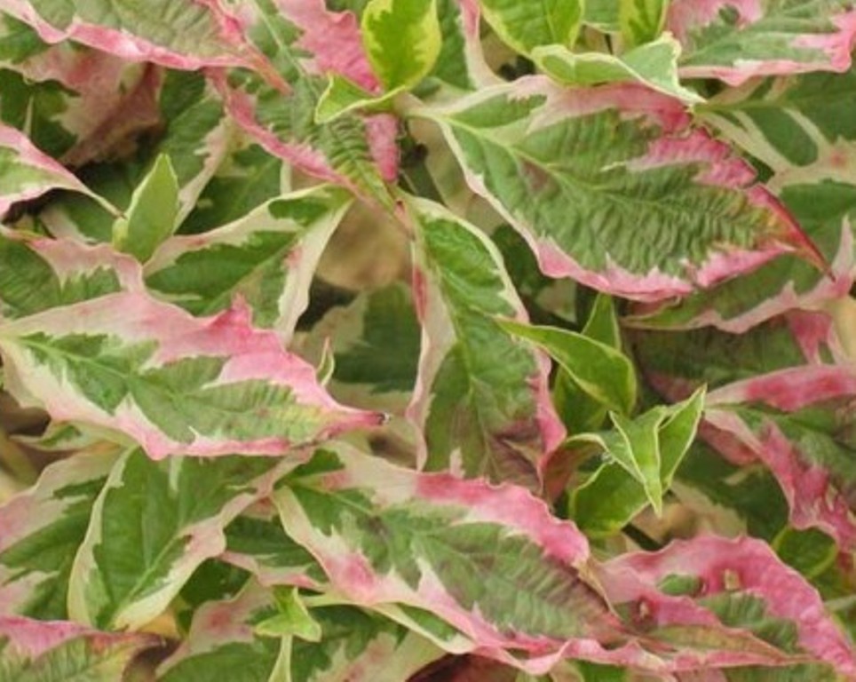 Осенью листва дёрена пестролистный окрашивается в разные оттенки алого и пурпурного