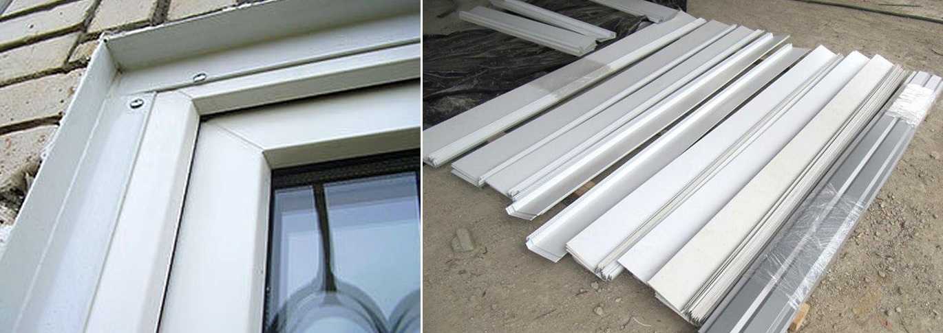 Этот тип наличников ставят обычно на улице с пластиковыми или металло-пластиковыми окнами. Это тонкий лист оцинкованного металла, покрытый краской, стойкой к воздействию климатических факторов (обычно порошковой краской).