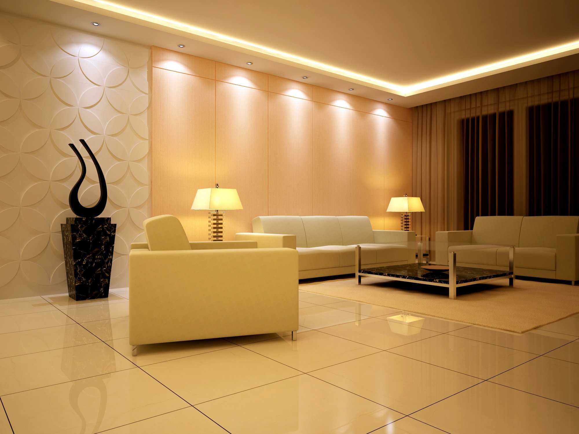 В гостиной ситуация обратная. Здесь объемная люстра более чем уместна. Поскольку это общая комната, нужно предусмотреть различные сценарии подсветки. Бра над креслом, торшер у дивана, устройство из светодиодного волокна на журнальном столике отлично впишутся в интерьер. Светодиодное оформление с различными программами поможет расслабиться в будний день и украсит праздничную вечеринку.