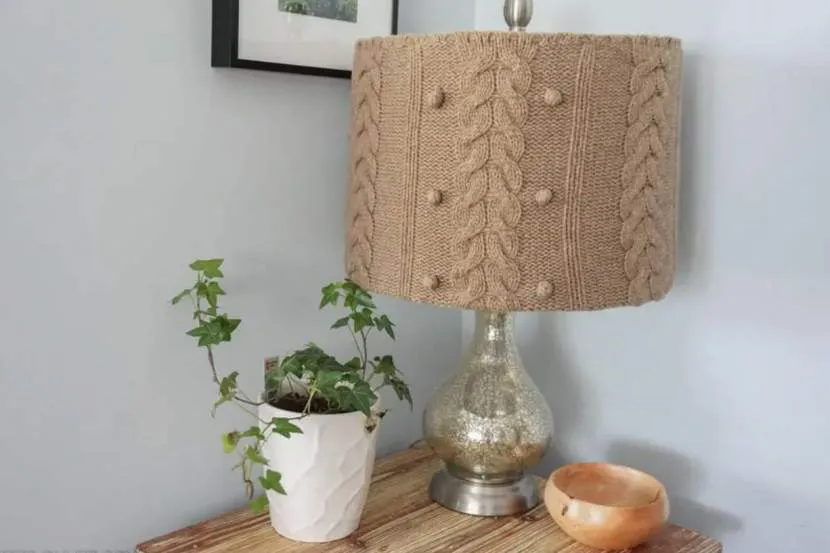 Вязаные и плетеные абажуры. Они выглядят эффектно и одновременно очень по-домашнему. Применяются разные техники: декор вяжут из пряжи, используют бечевку, ленты или любые подручные нитки для плетения узелковым способом (макраме). Иногда комбинируют старые вещи: салфетки или фрагменты вязаной одежды.