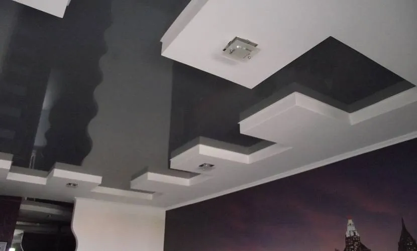 Комбинация из гипсокартона и натяжного потолка имеет оригинальный внешний видИсточник kakpotolok.ru