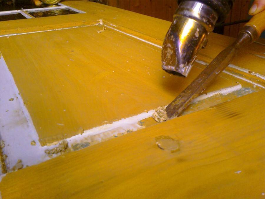 Для удаления старой краски или лака широко используется строительный фен. Его можно заменить утюгом (в этом случае прогревать нужно через фольгу).