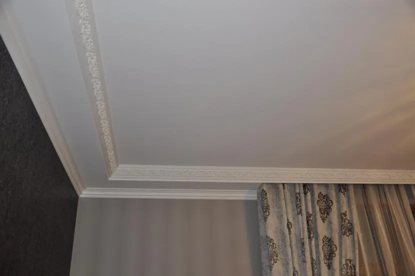 - В отличие от настенных карнизов не «съедается» высота стен. Наоборот, потолки кажутся более высокими.