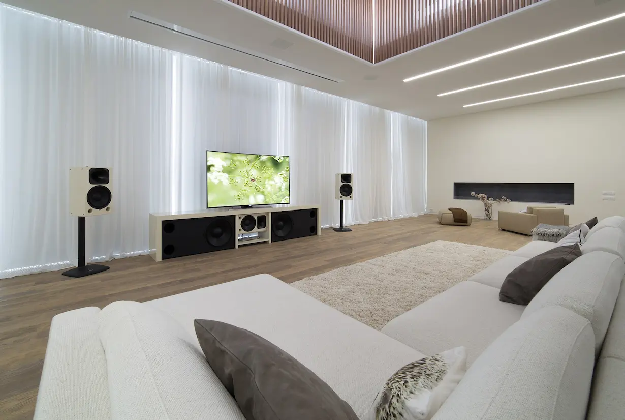 Скрытое крепление к натяжному потолку помогает создавать оригинальные дизайнерские эффекты в оформлении жилых помещений.