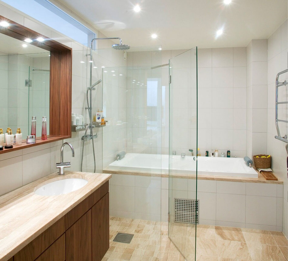 Так, например, одним из самых важных мест для подсветки является зона умывальника с зеркалом. Оптимальным решением здесь будет встроенное освещение, направленное от отражения. Так тебе будет гораздо удобнее и бриться, и чистить зубы, и умываться. Стоит учесть и мощность дополнительных светильников — они не должны ослеплять тебя, но и слишком тусклые выбирать не стоит.