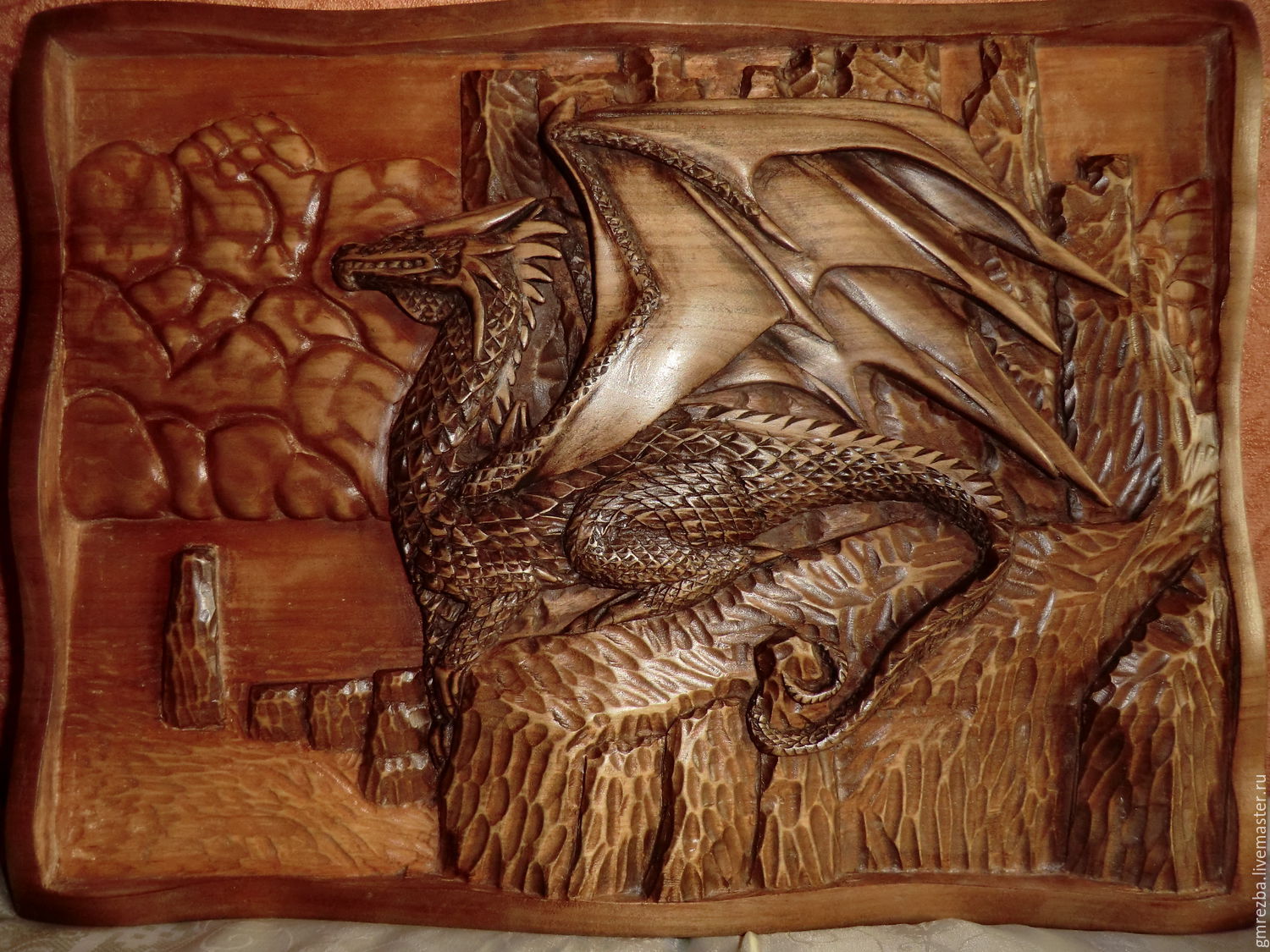 Рельефная резьба по дереву. В этой технике изображение расположено над фоном или на одном с ним уровне. Это резные панно различной формы с объемным изображением.