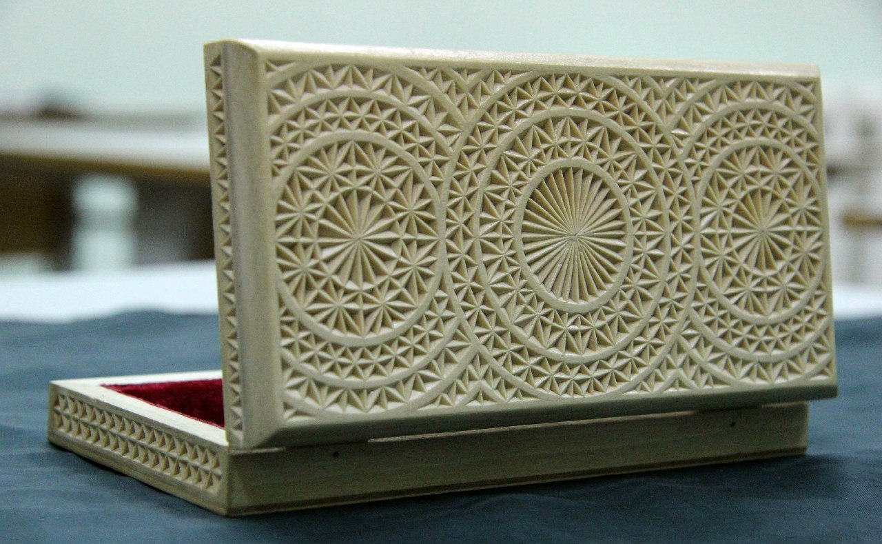 Геометрическая резьба по дереву состоит из разных элементов, имеющих геометрическую форму, и выполняется одним резаком. Орнамент для резьбы может быть: линии, квадраты, трехгранные и четырехгранные углубления и т. д. Эта техника позволит сделать даже резные работы таких форм – листки, цветы, ягоды, колосья. Если развивать умение, то она перейдет в форму контурной резьбы.