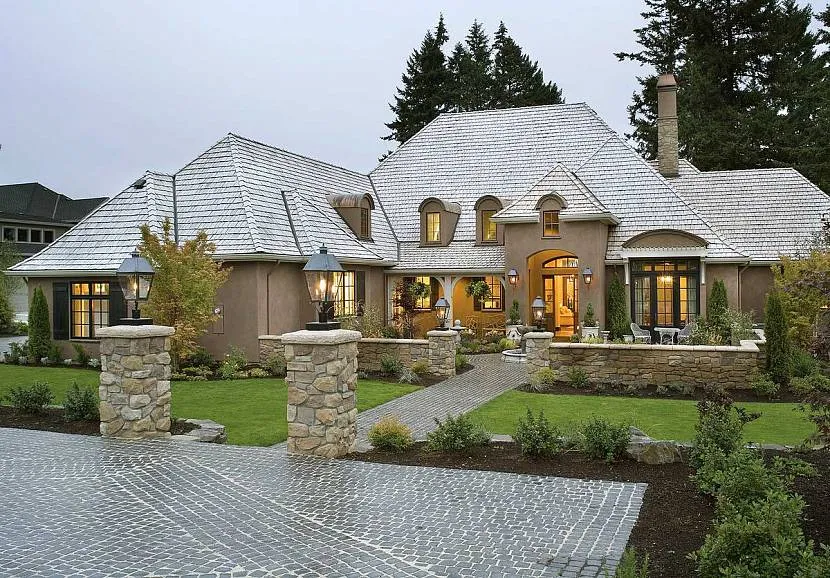 Такой стиль идеально подходит для строительства загородных коттеджей.