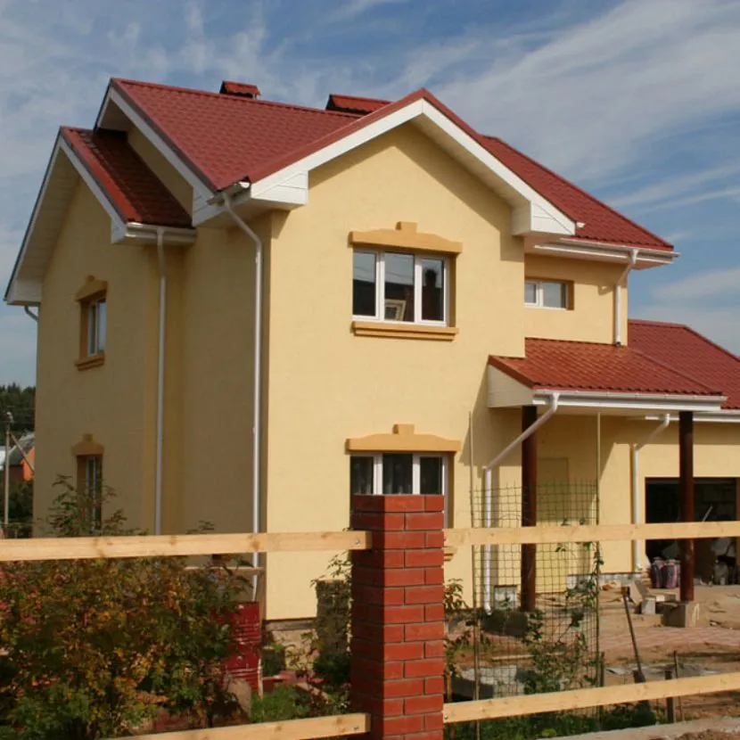 После того как стены отштукатурены, их можно покрасить в любой интересующий вас тон. Если вы живете возле дороги, не стоит красить фасад дома в бежевый или белоснежный оттенок.