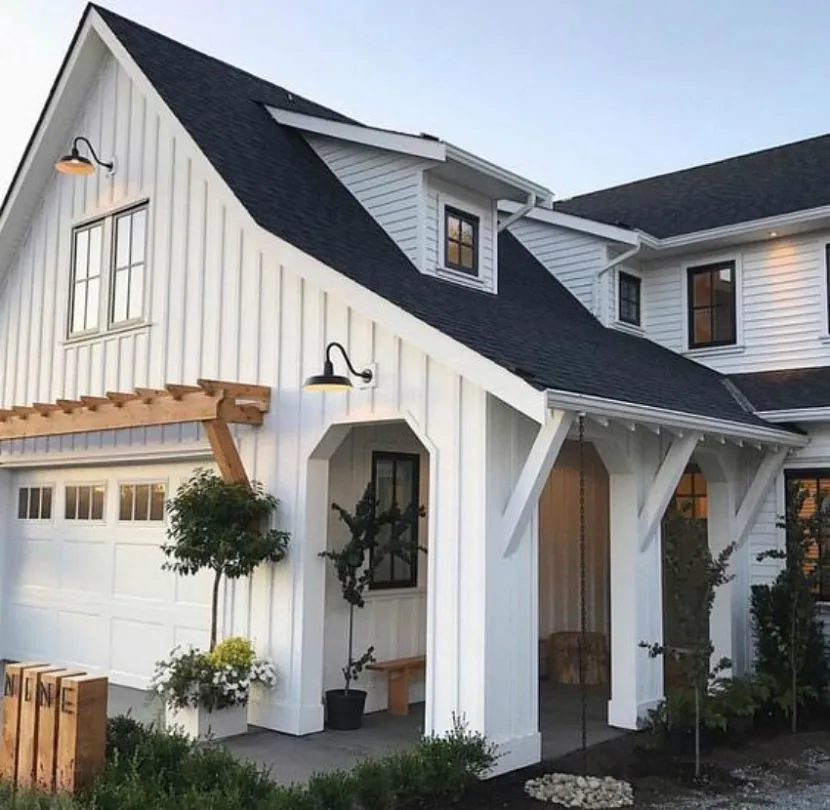 Белый и черный в оформлении экстерьераИсточник pinterest.com