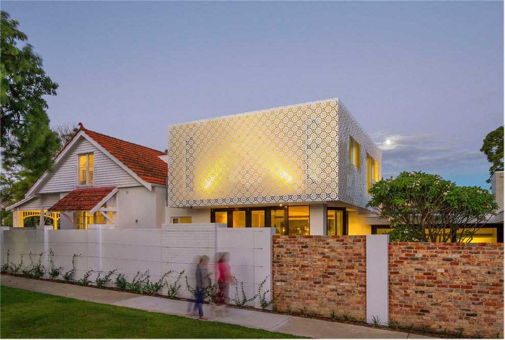 Декоративную стену обязательно нужно закрепить к несущей с помощью специальных спиральных гвоздей, или заложить оцинкованную перфоленту, которую нужно прибить гвоздями к несущей стене. В баварской кладке для закрепления с внутренними стенами используются также тычковые ряды, которые выполняются через ложковых рядов. Холл ведет к красному кирпичному экрану, который повторяет изгиб в фасаде.