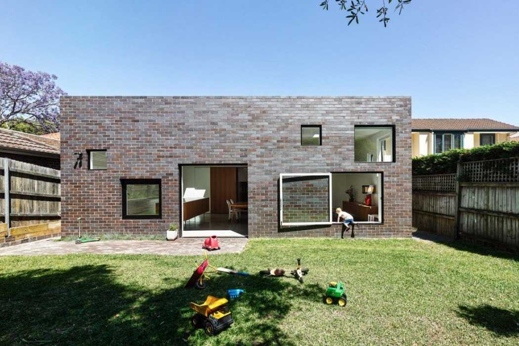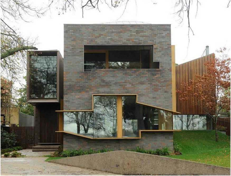 Отделка основных стен кирпичной кладкой в панорамном двухуровневом доме