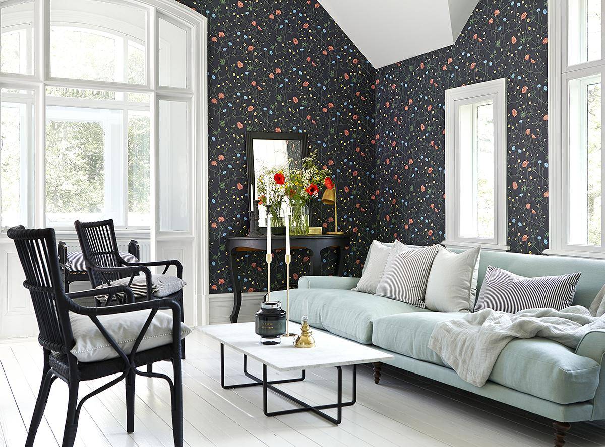 Маленькие цветки способны визуально расширить комнату, поэтому их нередко используют для отделки хрущевок. Классические интерьеры тяготеют к использованию небольших флористических мотивов, которые ритмично покрывают всю поверхность полотна.