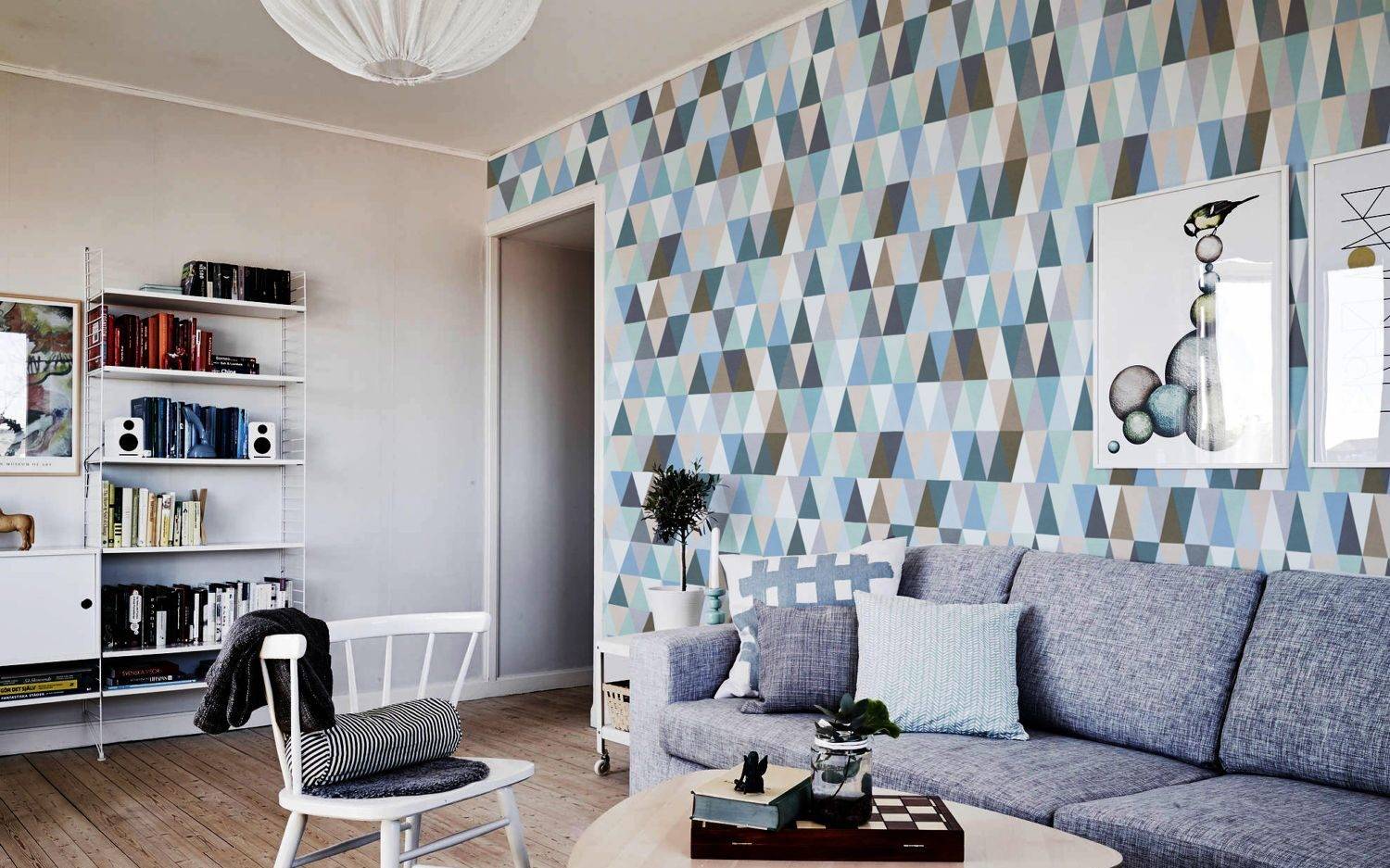 Не теряют своей актуальности крупные картинки. Квадратные и прямоугольные узоры, окрашенные в светлые тона, увеличивают комнату, но однотонные мотивы могут сделать интерьер скучным. Треугольники и ромбы создают объем и абстракцию. Выбирая обои с геометрическим рисунком в гостиную, можно реализовать собственные идеи, при этом грамотно расставить акценты.