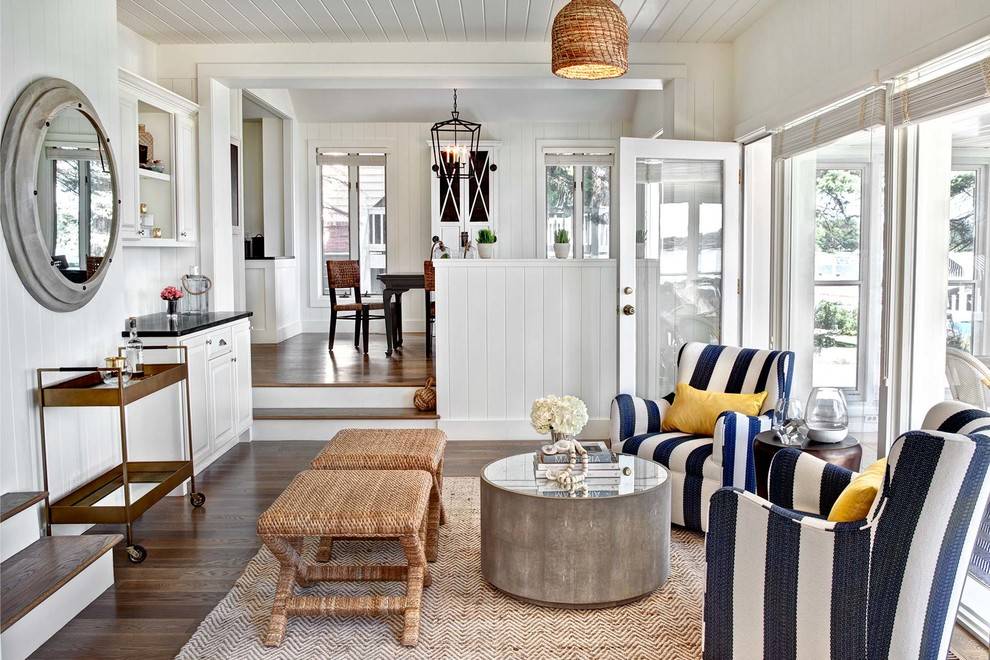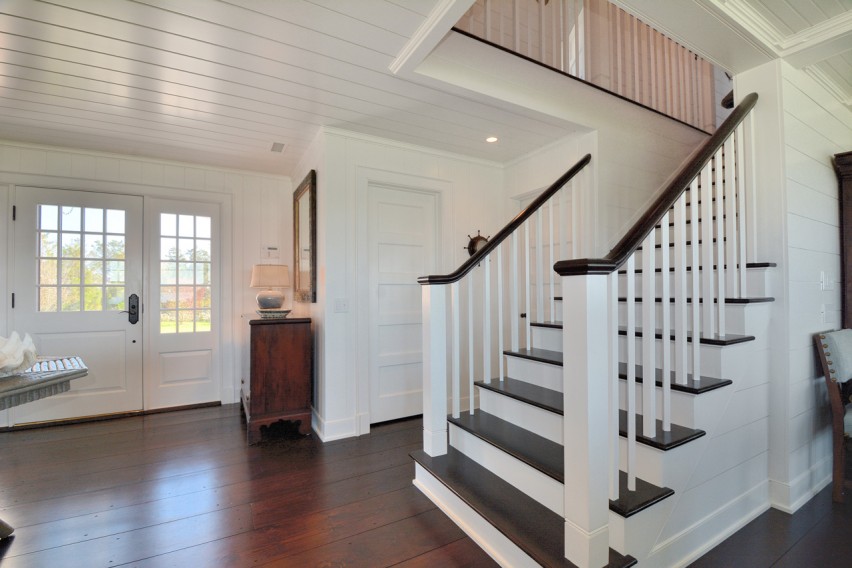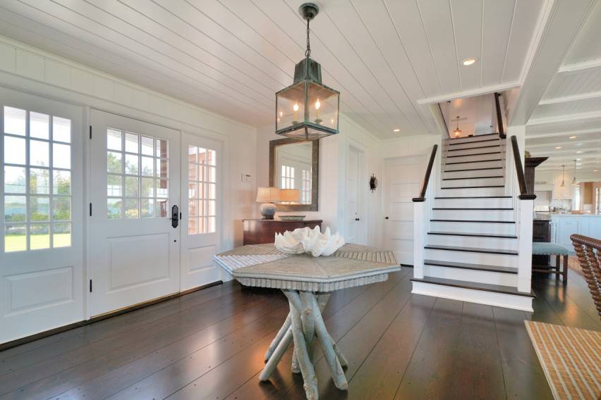 Для этого стиля характерны пастельные тона. Иногда дополняются балками и потолочными плинтусами, выкрашенными в белый. Такое сочетание придаёт свежести.
