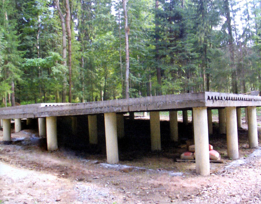 Фото 14. Свайный фундамент с обвязкой из деревянных балок