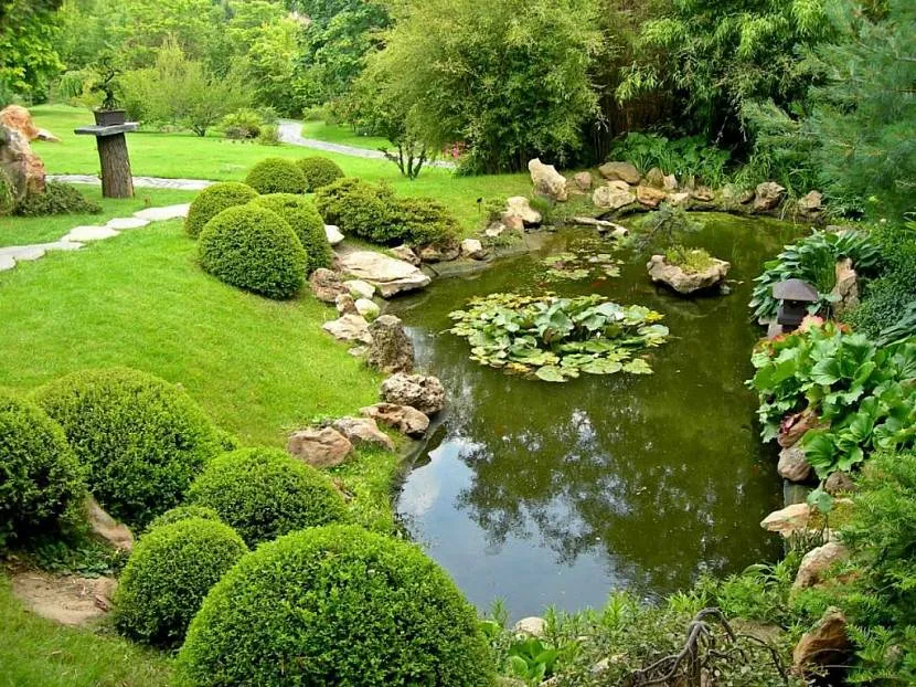 Пруд в ландшафте восточного стиляИсточник iplaydeal.co