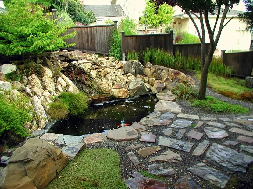Если пруд нужен для дизайна территории, и увлажнения воздуха, а места не очень много, то делают выбор в пользу небольших водоемов. При желании запустить в пруд рыбок, надо будет поддерживать комфортный (для них) температурный режим воды.