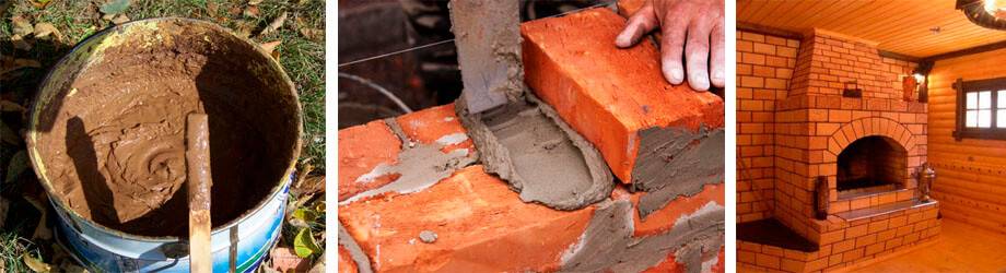 - для теплоаккумулирующей части печи, на которую воздействуют температуры до 600С и дымовые газы, лучше всего подойдет глиняный раствор;