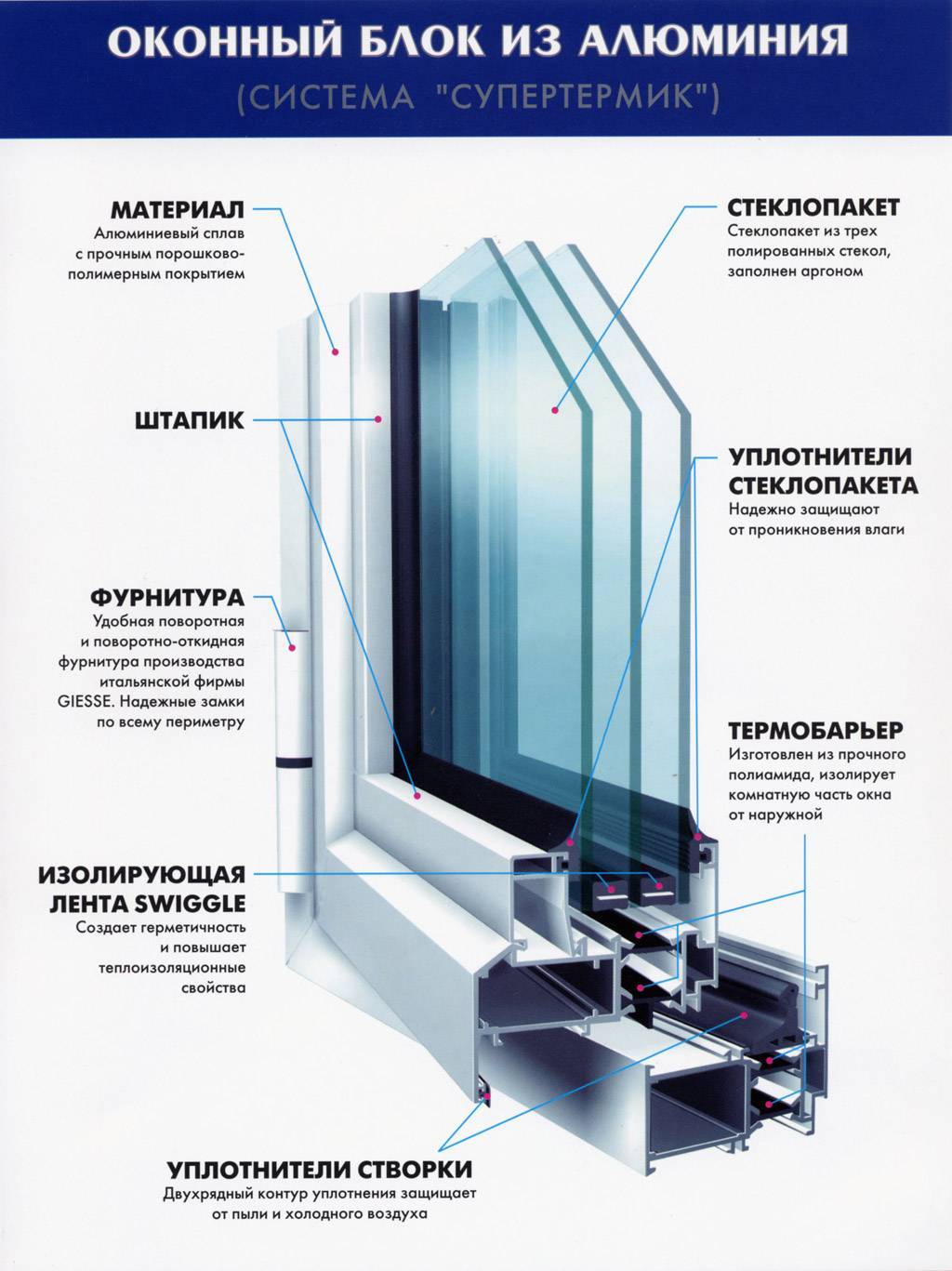 Для того, чтобы выбрать в пользу какого-либо материала необходимо знать его характеристики. Рассмотрим, что отличает каркас алюминиевого окна: