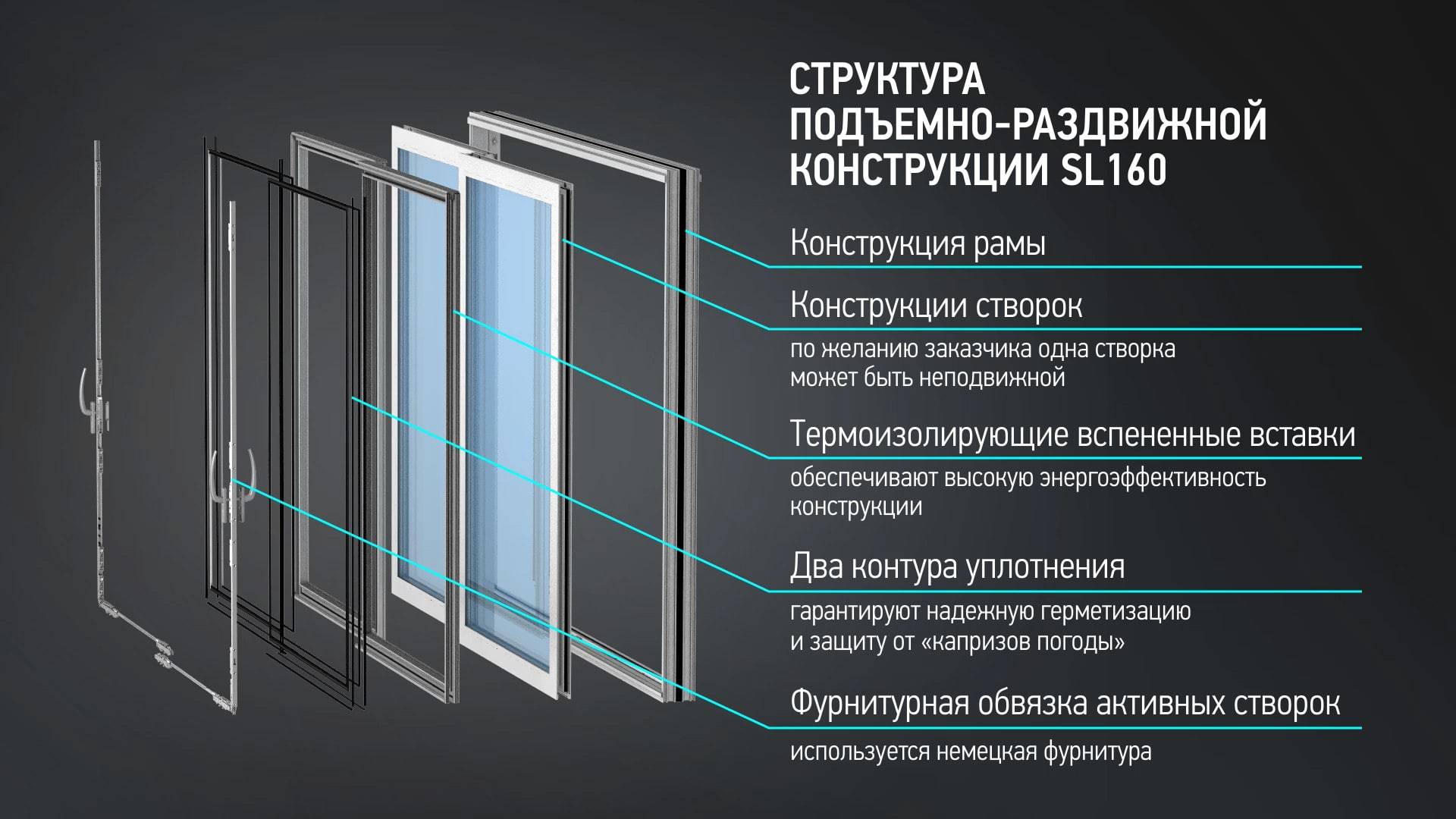 Для исключения скапливания дождевой воды или конденсата внутри конструкций предусмотрена дренажная система видимого или скрытого типа.