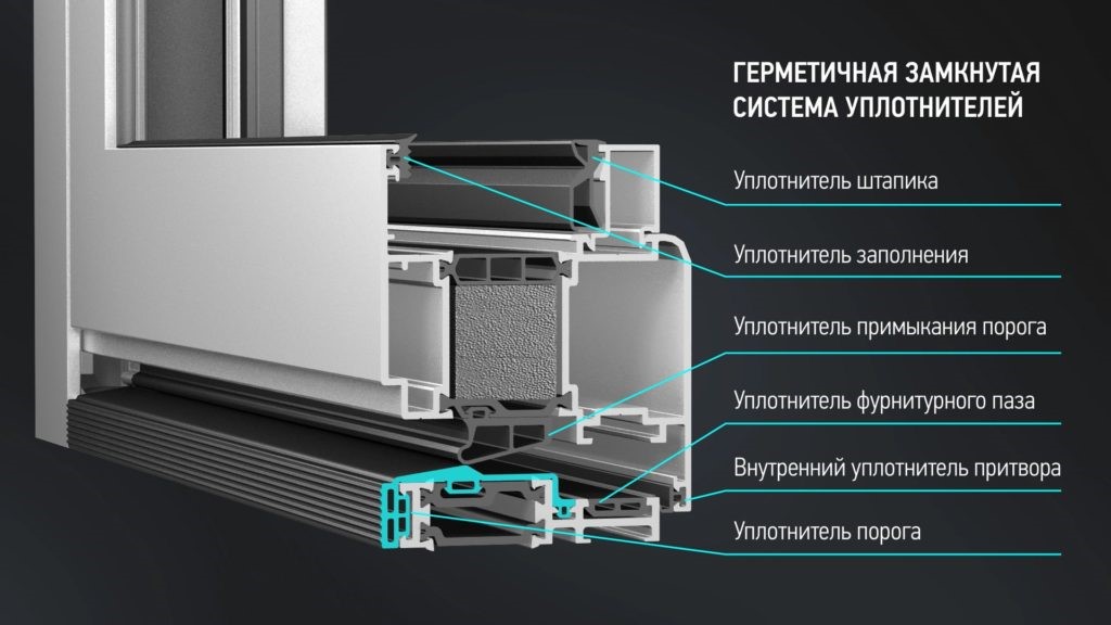 Герметичность и звукоизоляция окон «АЛЮТЕХ» обеспечиваются двухконтурным или трехконтурным уплотнителем, который на углах не загибается, а соединяется с помощью специальных элементов.