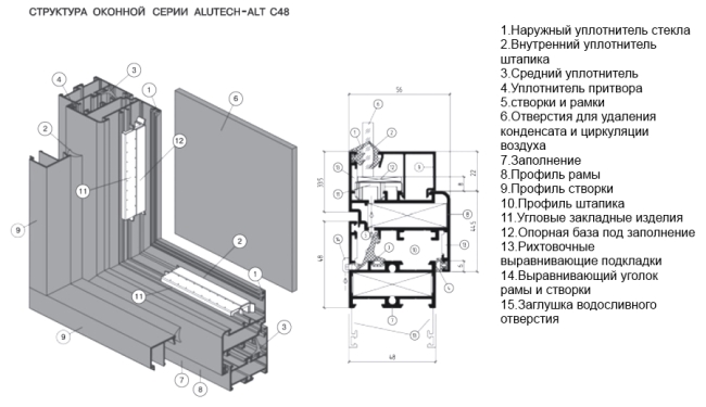 Рис. 1 Конструкция холодных алюминиевых окон