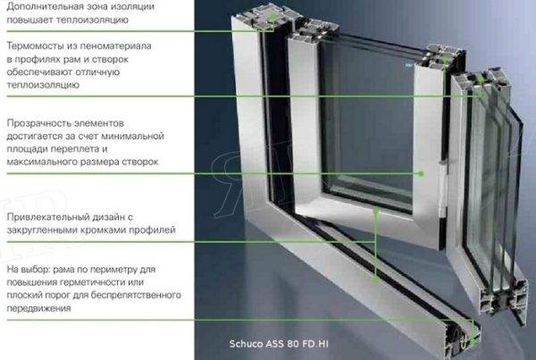 - высокая теплопроводность алюминия. Это значит, что в жаркий день профиль быстро нагревается, а холодный – промерзает. Эта проблема, к счастью, давно решена – производители используются слой теплоизолирующего материала, за счет чего конструкция получает отличные характеристики тепло— и звукоизоляции;