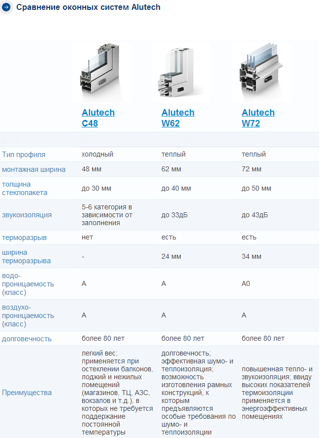 - Низкие показатели сопротивления теплопередаче алюминиевых окон , среднее сопротивление теплопередаче алюминиевого окна Alutech W62 – 0.35-0.66м2 °С/Вт это при том, что у самого простого эконом профиля ПВХ 60 мм этот же показатель не менее 0,5-0,75м2 °С/Вт.