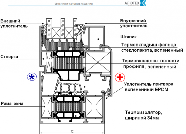 Алюминиевый профиль серии ALT W72 отличается от «холодных» решений наличием терморазрыва, который заполняется специальными вставками с низким коэффициентом теплопроводности. Использование терморазрыва позволяет решить проблему теплопотерь через окна, что особенно актуально для остекления частного дома.