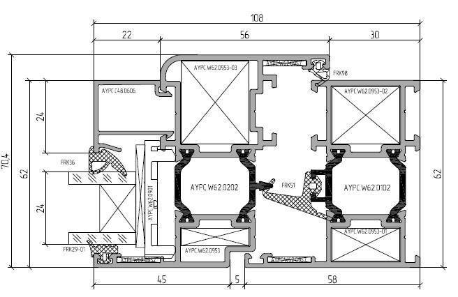 На рисунке 5 показаны основные конструкционные характеристики алюминиевой рамы с терморазвязкой в виде полиамидных вставок.