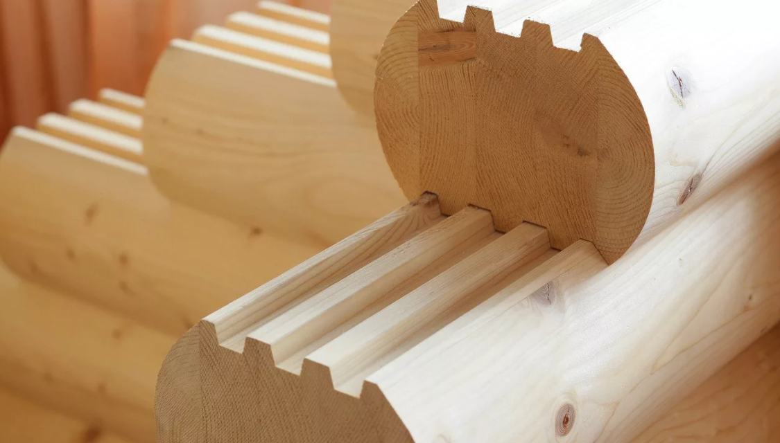 Этот вид бревна для строительства получают обтесыванием и ошкуриванием дерева с двух боковых сторон. Технология носит название «норвежская рубка», имеющая клиновидную конструкцию замка, которая со временем при усадке делает соединение плотнее.