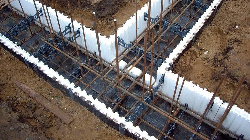 - Несъемная. Щиты остаются в составе фундамента и выполняют дополнительные функции. Например, пенополистирольные блоки утепляют бетон.