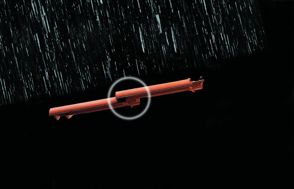 Один из видов испытаний на водопроницаемость. При испытании данных моделей смонтированный черепичный скат с уклоном в 10º поливают водой и сильным воздушным потоком, направленным со стороны карнизного свеса задувают влагу под нахлесты черепицы. Испытания показывают, что данные модели сохраняют герметичность при минимальных уклонах в 10º.
