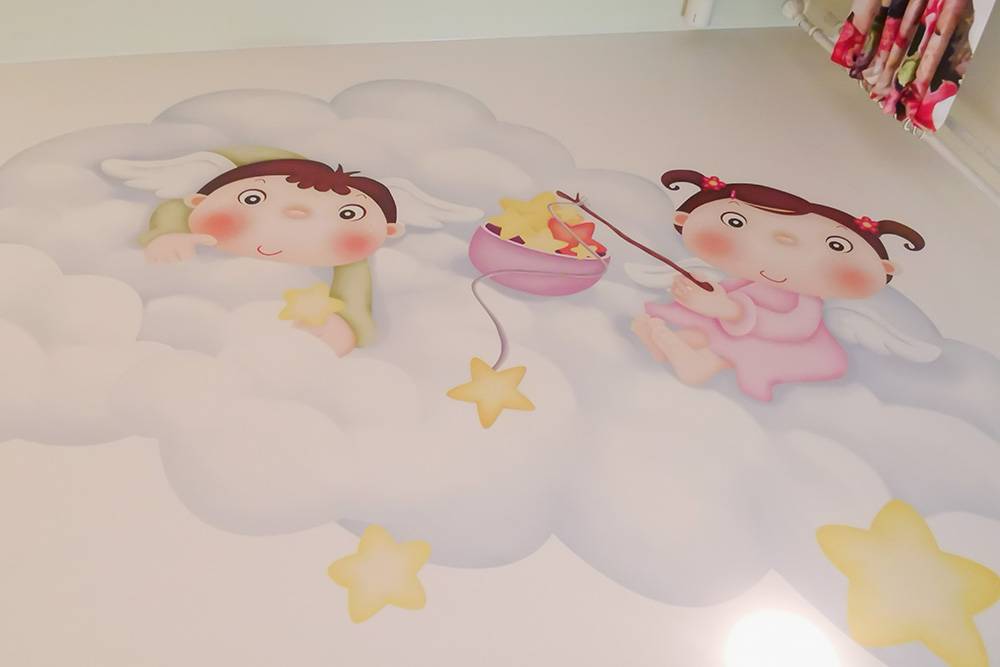 Последствия. Сейчас сын еще маленький, но когда подрастет и начнет кидать мяч, есть шанс, что натяжной потолок пострадает. Еще я не уверена, что сыну по мере взросления будет нравиться рисунок на пленке — ангелочки на облаке.