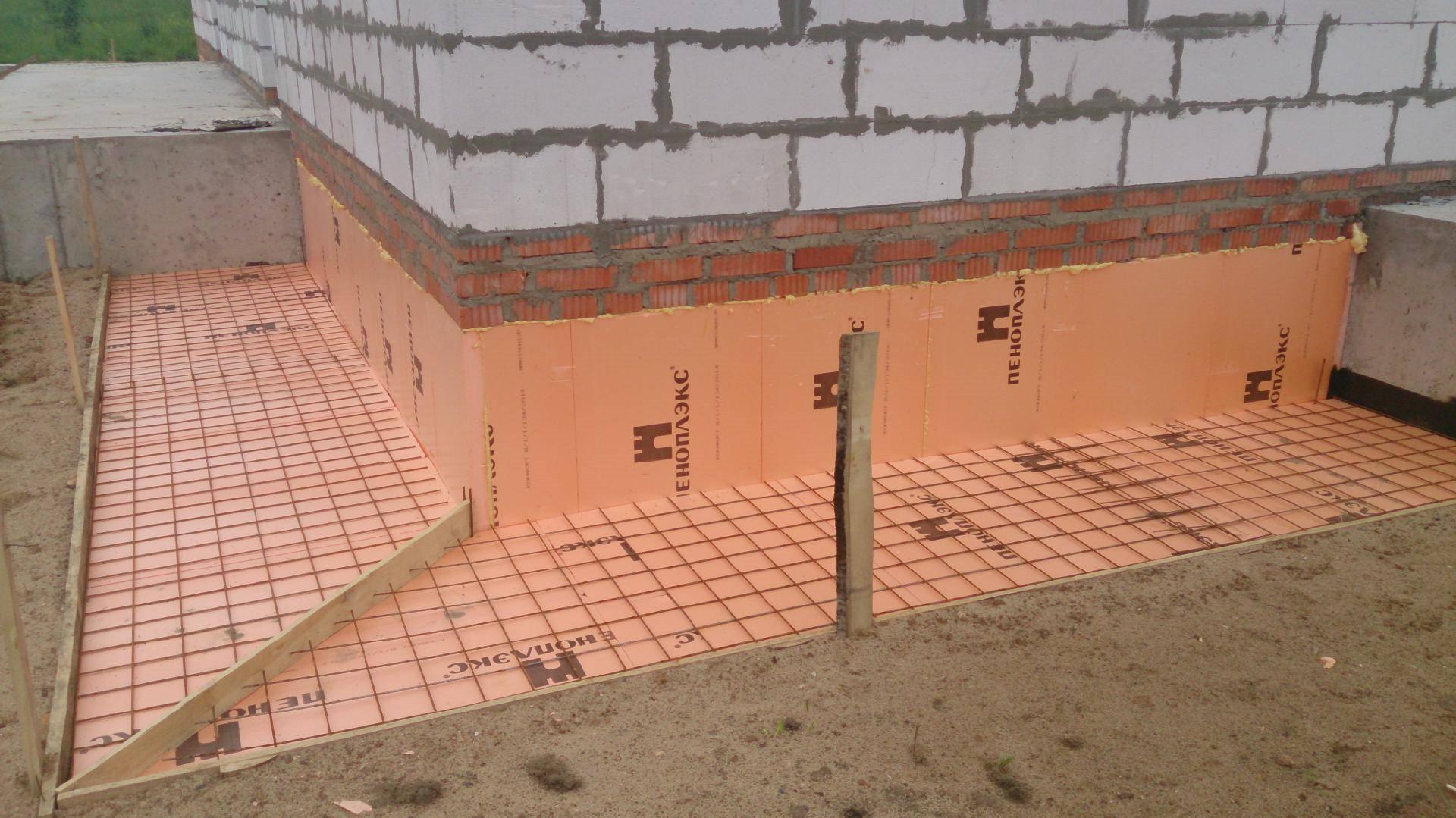 Если кратко говорить о том, как сделать утепленную отмостку с применением данного материала, то схема будет проста. Достаточно установить в два слоя листы толщиной 50 миллиметров или в один слой плиту толщиной 100 миллиметров. Листовые стыки следует накрыть пленкой из полиэтилена особой прочности, что должна быть постелена сверху.