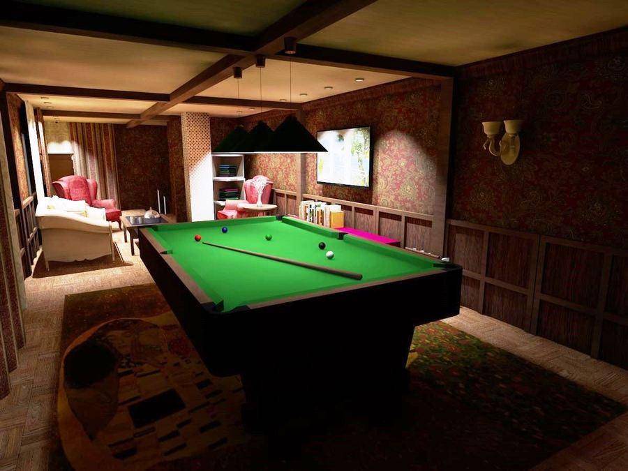Если площадь позволяет, в современных строениях оборудуют отдельную комнату отдыха, бильярдную, бассейн, веранду, место для барбекю и даже полноценную кухню.