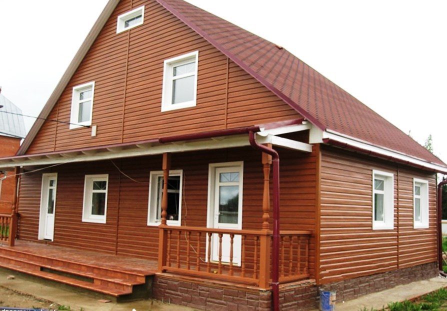 Лицевая сторона выгонки плоская, напоминает брус. Поэтому отделанный этим материалом дом напоминает брусовый сруб.