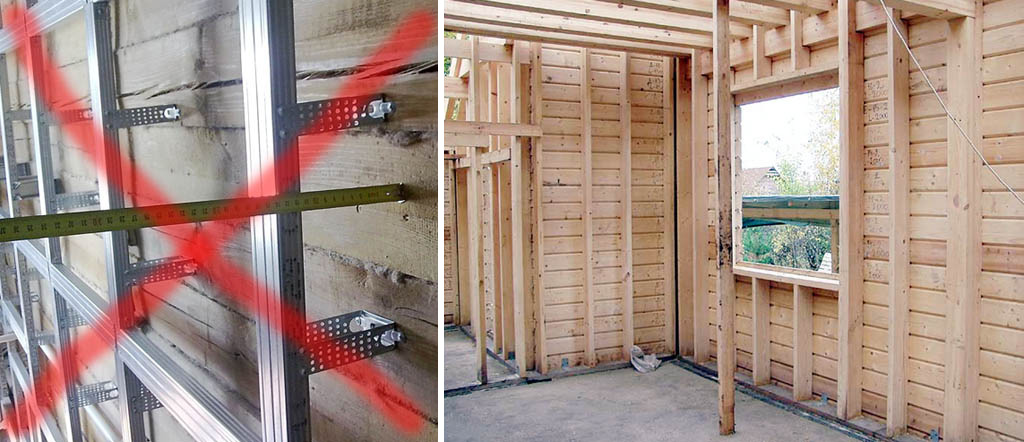 - Перед монтажными работами придется обнести поверхность стен профильной обрешеткой. Она будет каркасом для облицовочного материала.