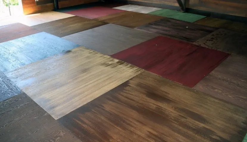 Не менее эффектным вариантом является применение пропиток, утемняющих пол и придающих поверхности роскошный вид. Преимущественно используются пропитки на основе полиуретана, имеющие высокую устойчивость к износу.