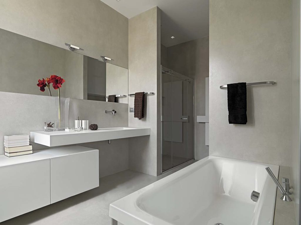 Ванная комната, как кухня, туалет, прачечная, — это помещения, называемые влажными, потому что здесь поверхности могут постоянно контактировать с водой. Поэтому фрагменты стен в раковине, ванне и в душевой кабине, то есть подвергающиеся постоянному контакту с влажностью, должны быть покрыты плиткой. Остальная часть ванной комнаты может быть окрашена. К сожалению, слишком большое поглощение влаги через стены несет определенный риск, особенно во влажных помещениях, так как избыток пара конденсируется на стенах. Кроме того, если в комнате тепло, может появиться плесень и грибок