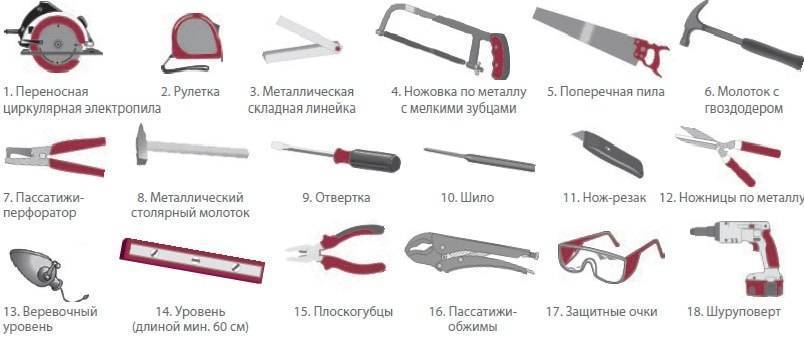 Все эти элементы должны быть сделаны из оцинкованной стали – они устойчивы к коррозии, что важно при проведении работ в помещениях с повышенной влажностью. Деревянные хоть и дешевле, но менее долговечны. Также нужны будут: